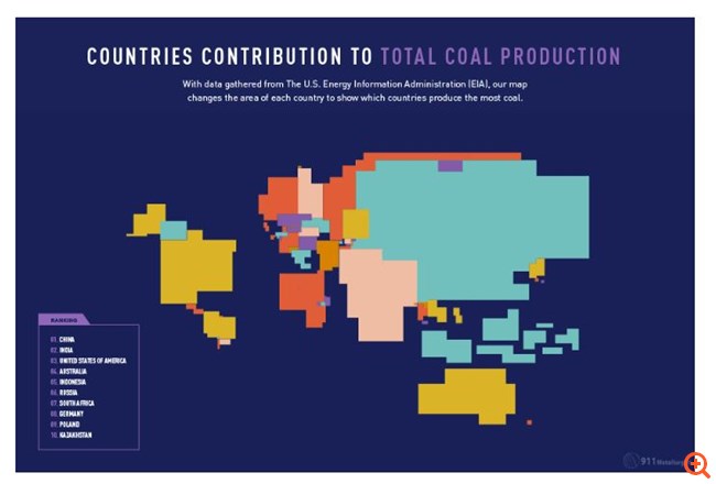 Η Κίνα είναι μακράν ο μεγαλύτερος παραγωγός άνθρακα παγκοσμίως, αντιπροσωπεύοντας το 46% της παγκόσμιας παραγωγής το 2018. Νομίζω ότι η μεγαλύτερη έκπληξη στο Top 10 είναι η παρουσία της Γερμανίας, η οποία θεωρείται ευρέως ότι είναι μία από τις πιο "πράσινες" χώρες του κόσμου.